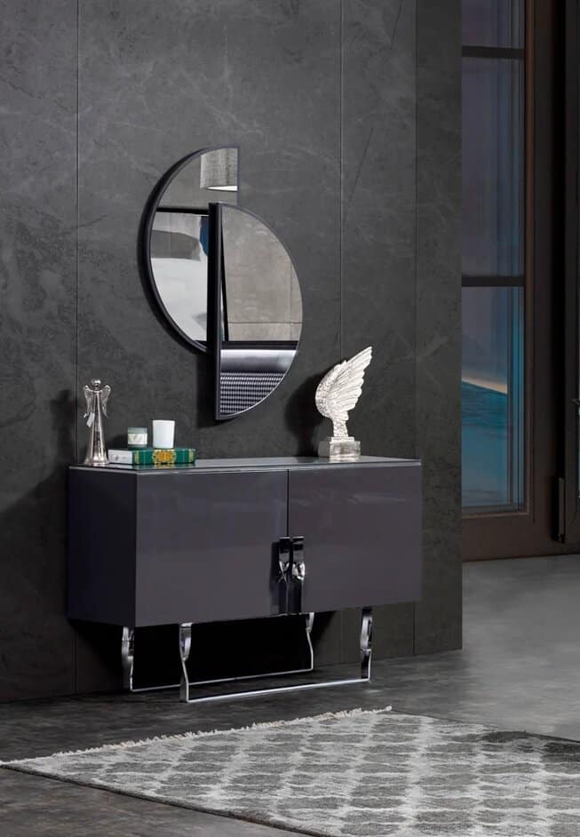 Kezdőlap Webshop Bútorok Asztal, konzol, lerakó Konzol asztal Zen fésülködő asztal / konzolasztal + tükör – szürke & króm
