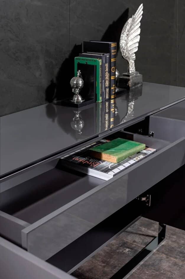 Zen Tv szekrény / Tv állvány magasfényű szürke & króm kombináció fiókokkal.
