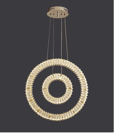 Briel mennyezeti lámpa dupla csavart karika 60 & 100 cm – arany & kristály