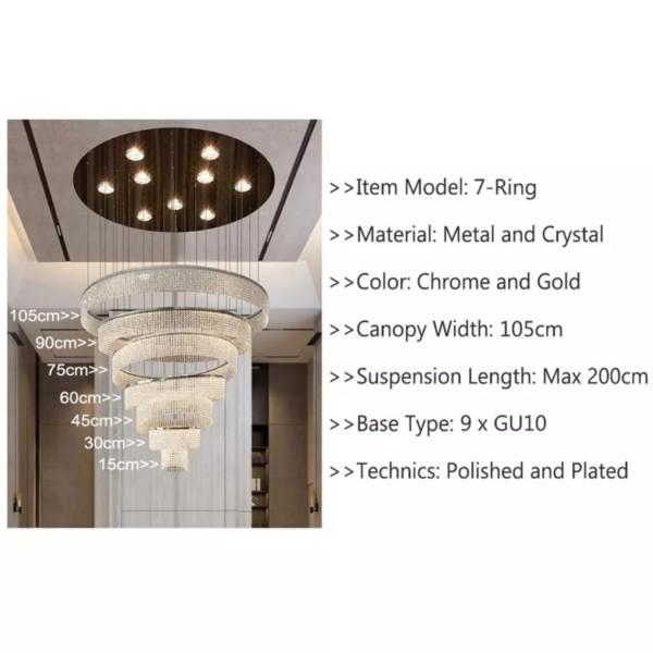 Shyla mennyezeti lánc lámpa 7 soros – króm