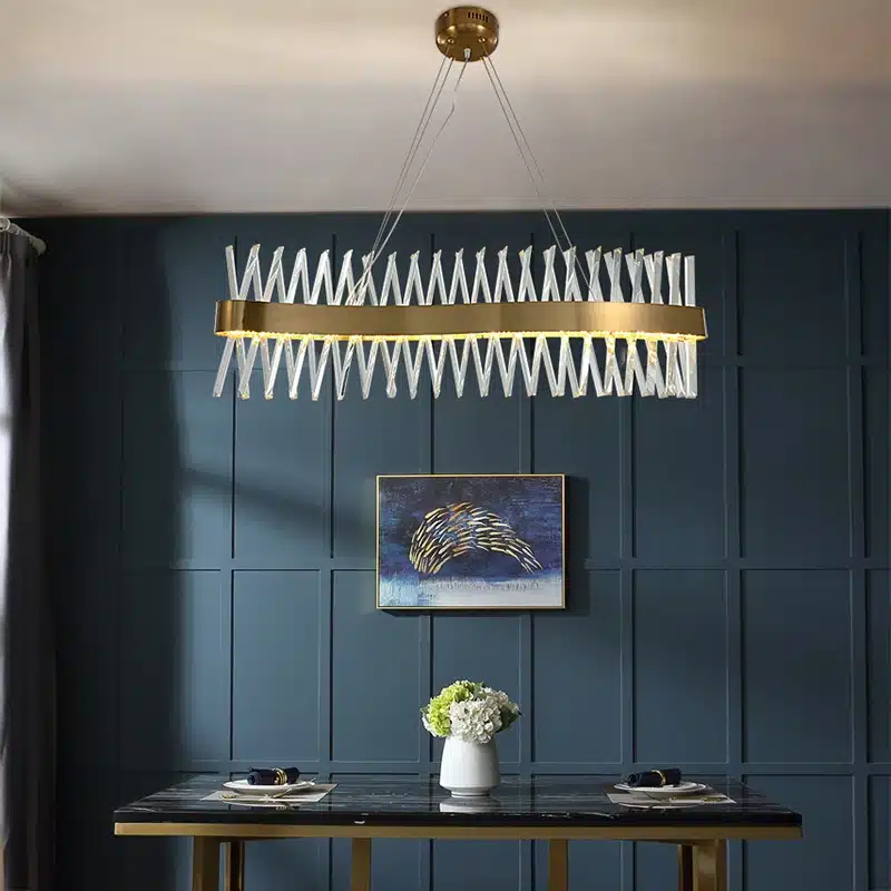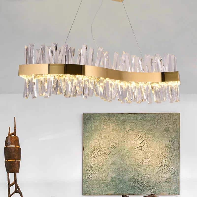 Díva hullám alakú mennyezeti lámpa K9 kristályokkal és arany díszcsíkkal.