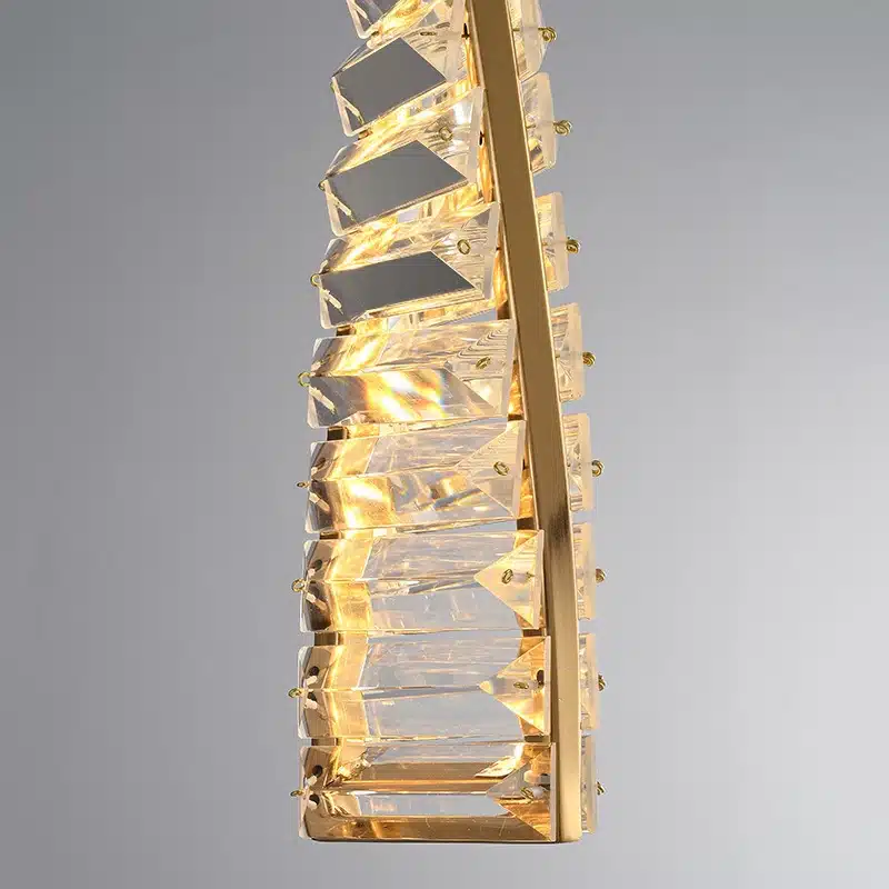 Briel csavart függesztett lámpa, tükörarany és kristály, 20 függővel
