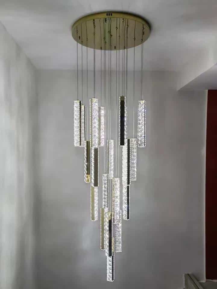 Briel csavart függesztett lámpa, tükörarany és kristály, 20 függővel