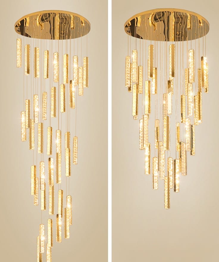 Briel mennyezeti lámpa dupla csavart karika 60 & 100 cm – arany & kristály