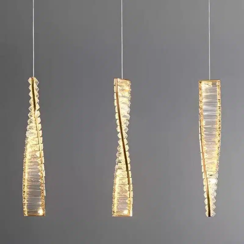 Briel csavart függesztett lámpa, tükörarany és kristály, 20 függővel