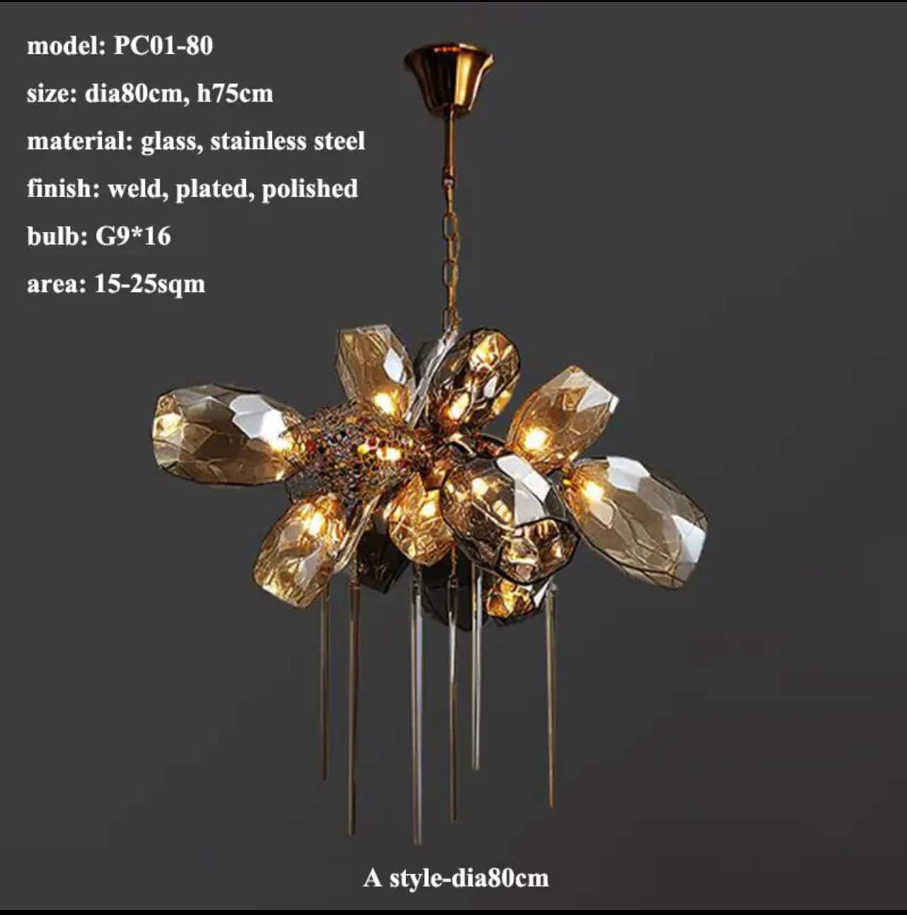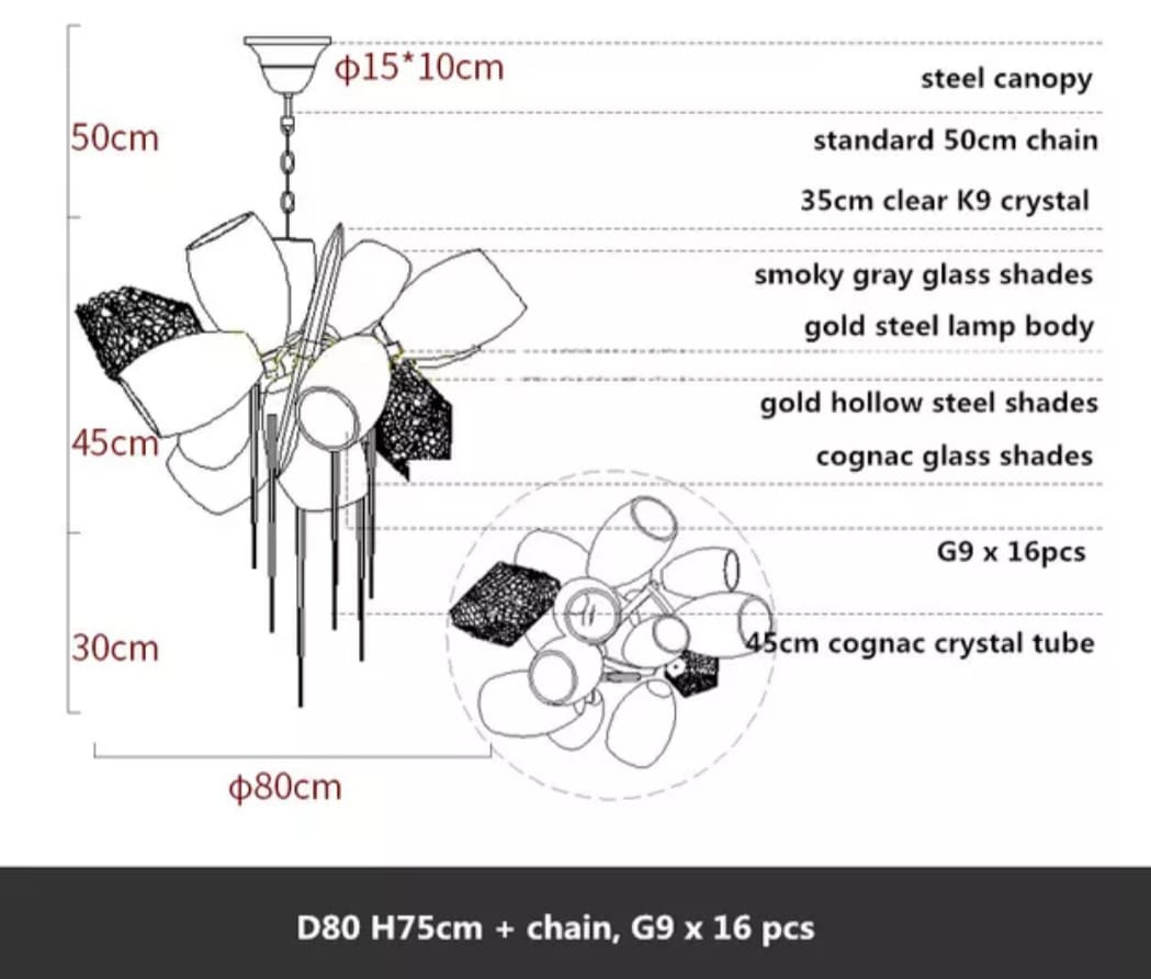 A Graciella család lámpái impozáns arany és kristály kivitelben készültek. Az olasz stílusvilág ihlette .