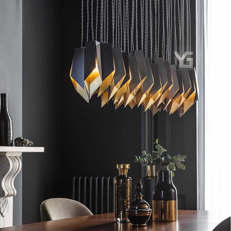A Vezuvio arany és fekete acél lámpái egyedi megjelenést kölcsönöznek otthonának.