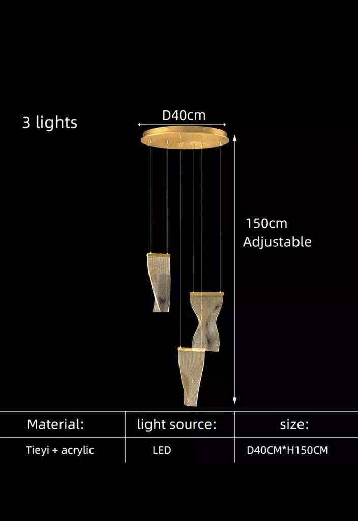 Kala mennyezeti lámpa 3 függeszték, arany & acryl.