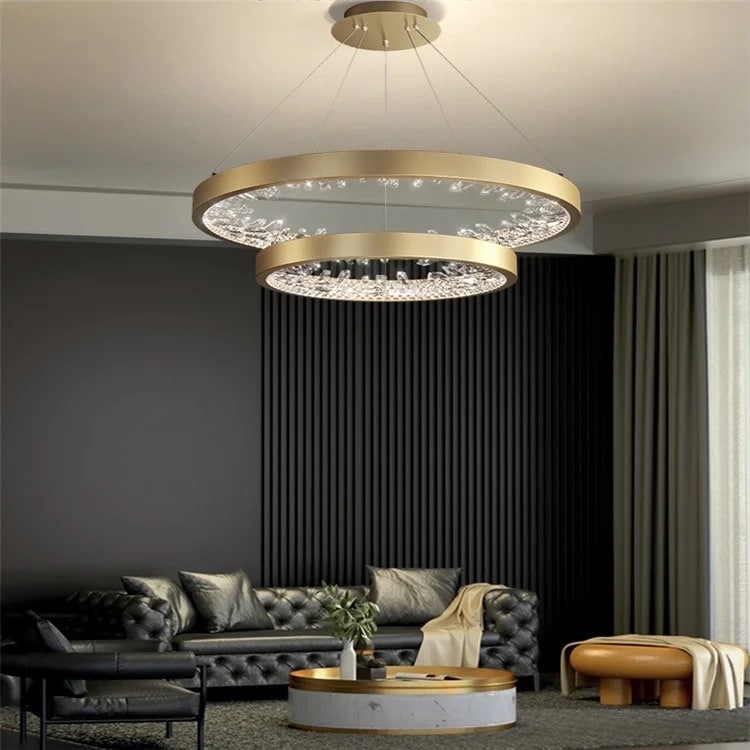 Briel mennyezeti lámpa dupla csavart karika 60 & 100 cm – arany & kristály
