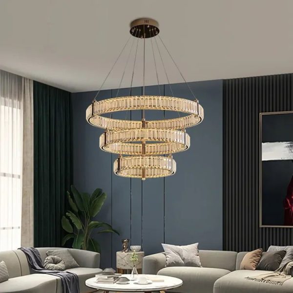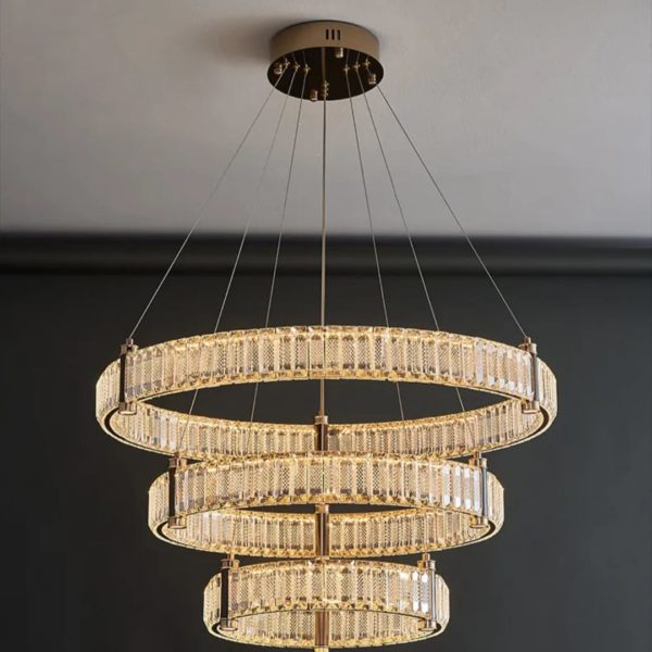 Bo Mercedes mennyezeti lámpa, arany és kristály, 3 gyűrűs, 80 +60+40cm