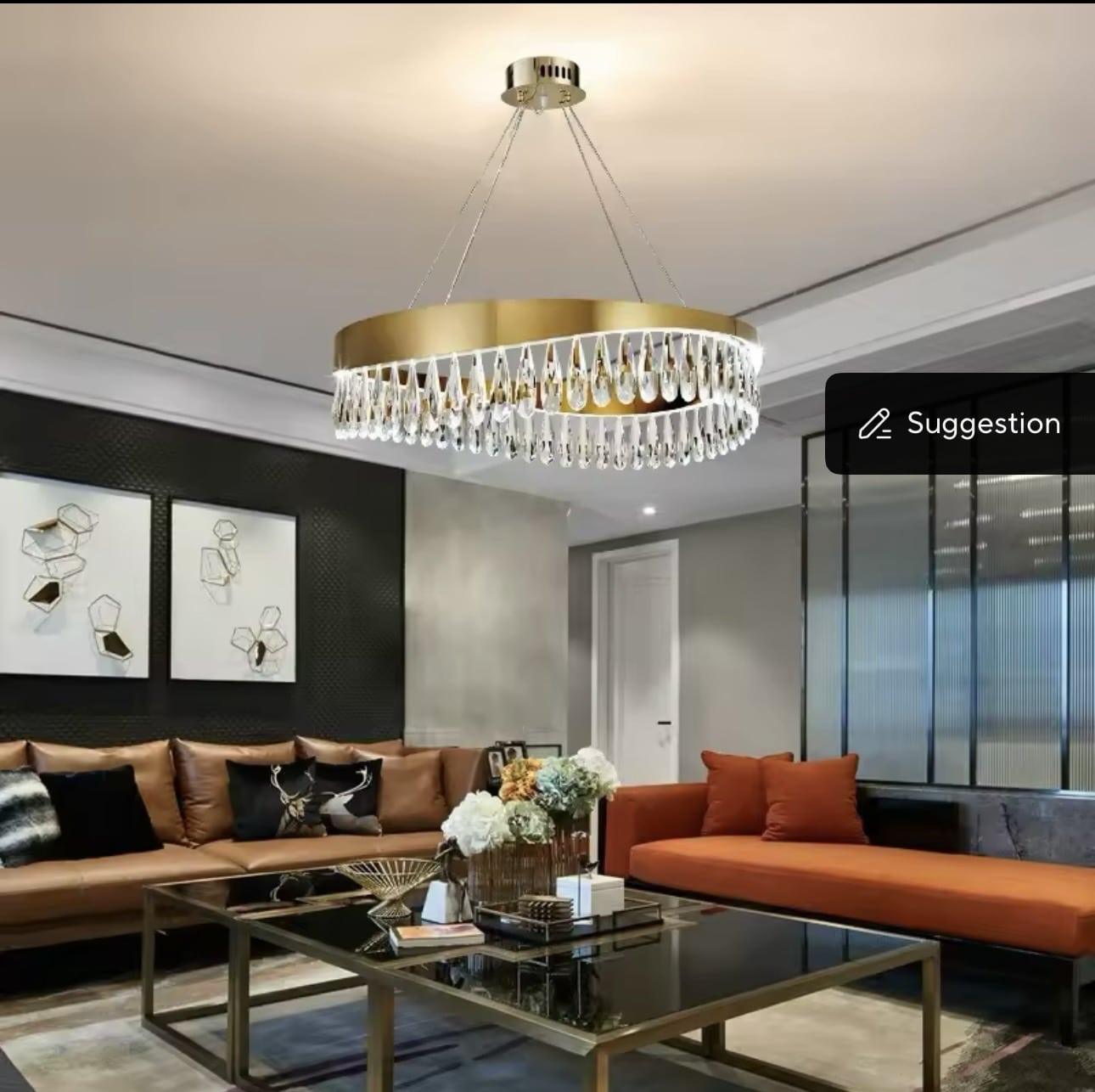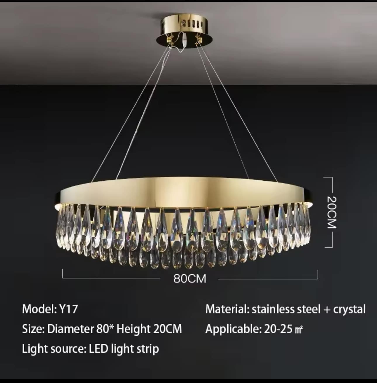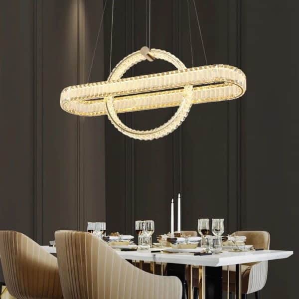 Bo Mercedes mennyezeti lámpa, arany és kristály, kerek és ovális, 60+20 cm