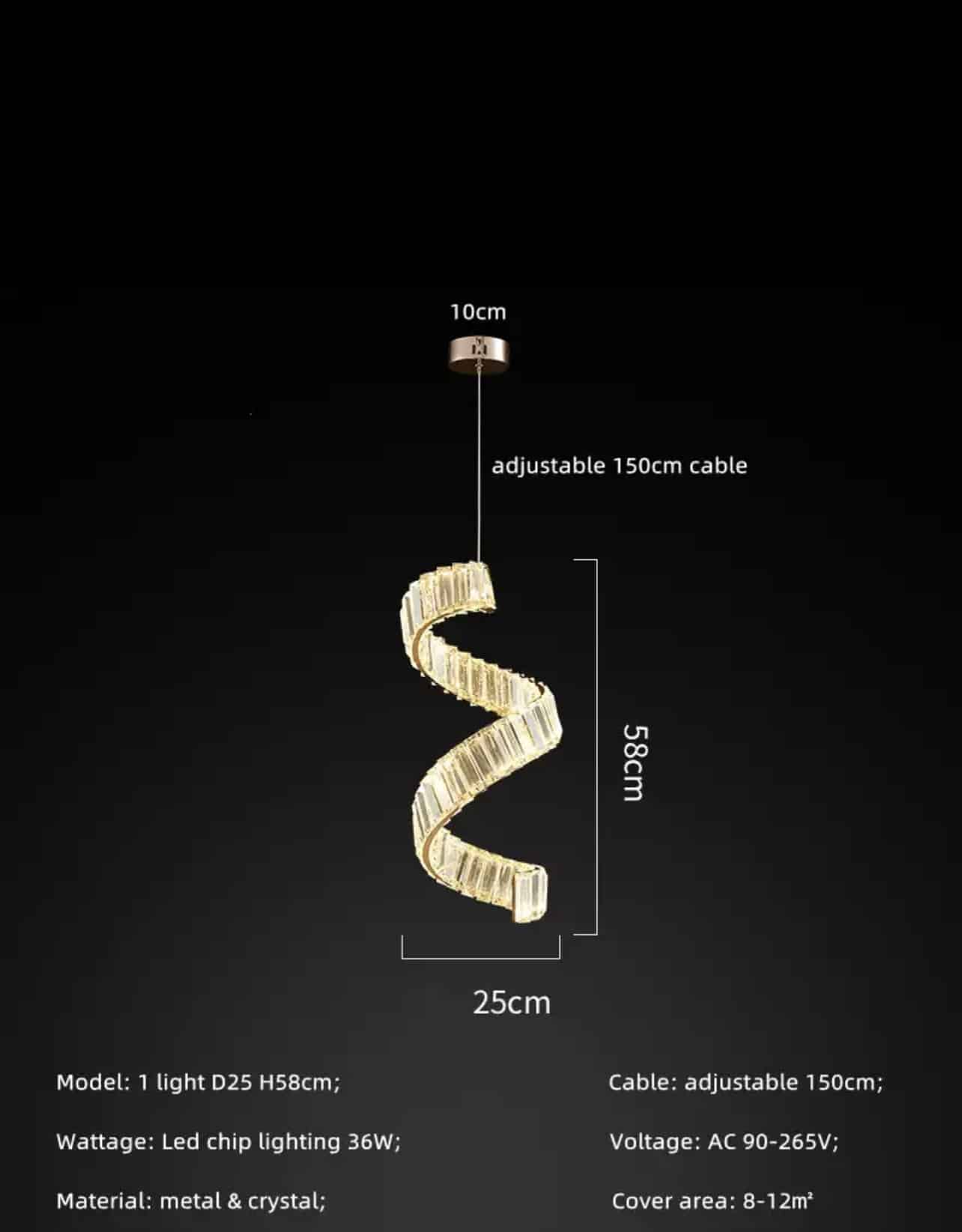Beril arany kristály ( K9) csavart függesztett lámpa