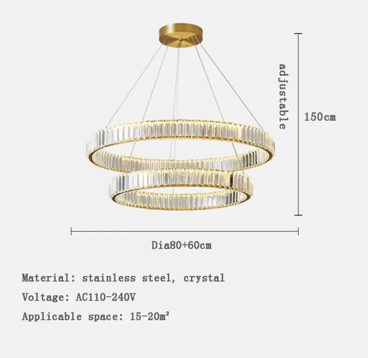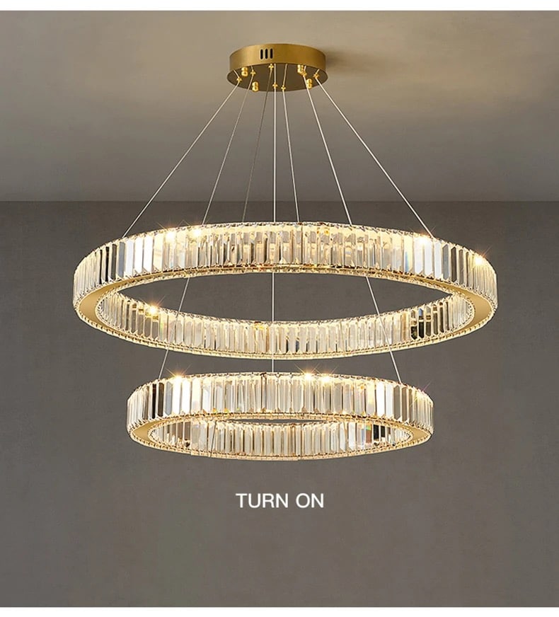 2-Tire Pendant Light,Dia(60+80cm), Iron frame+K9 crystal, 3000K, led 76W