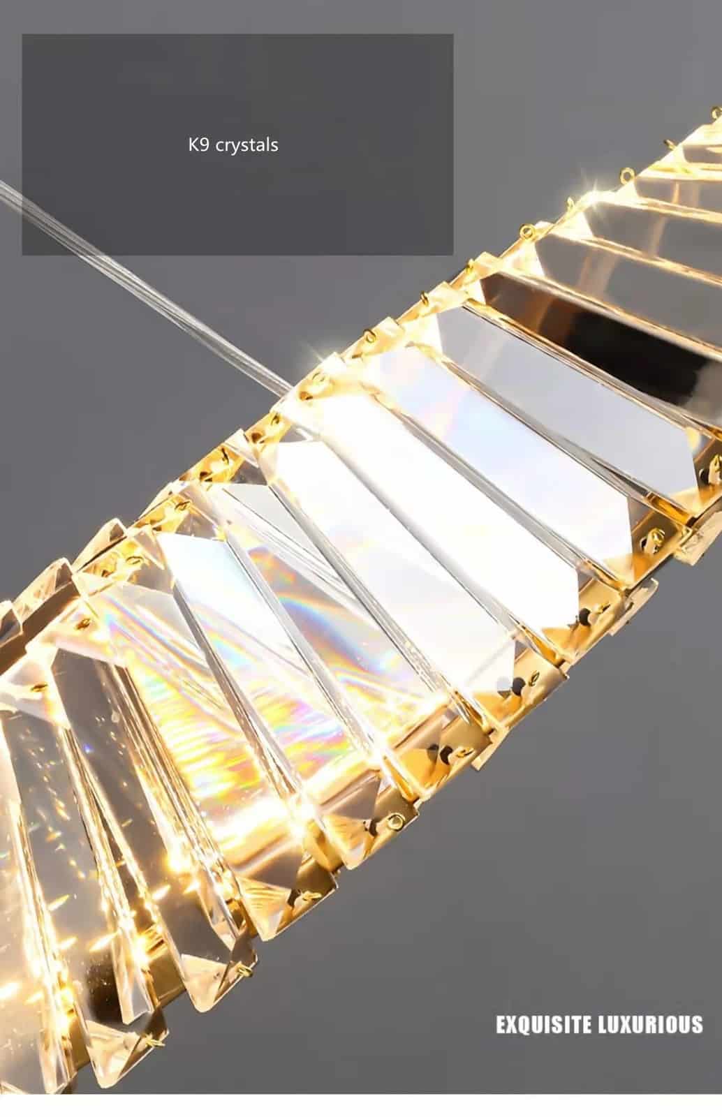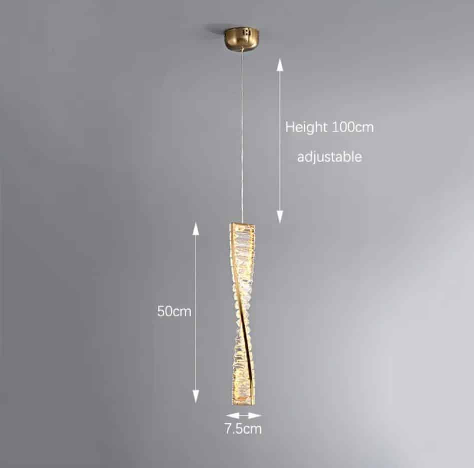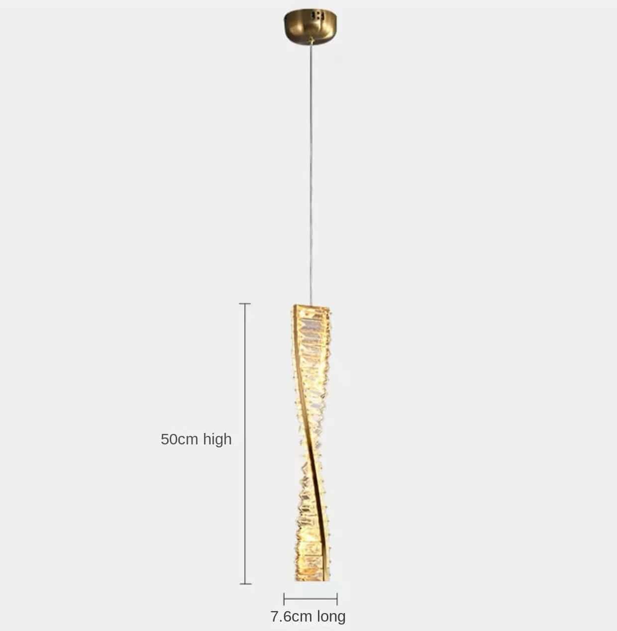 Beril csavart mennyezeti lámpa, arany és kristály 50 cm függesztékkel