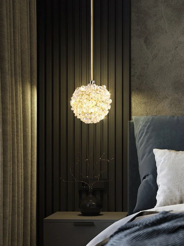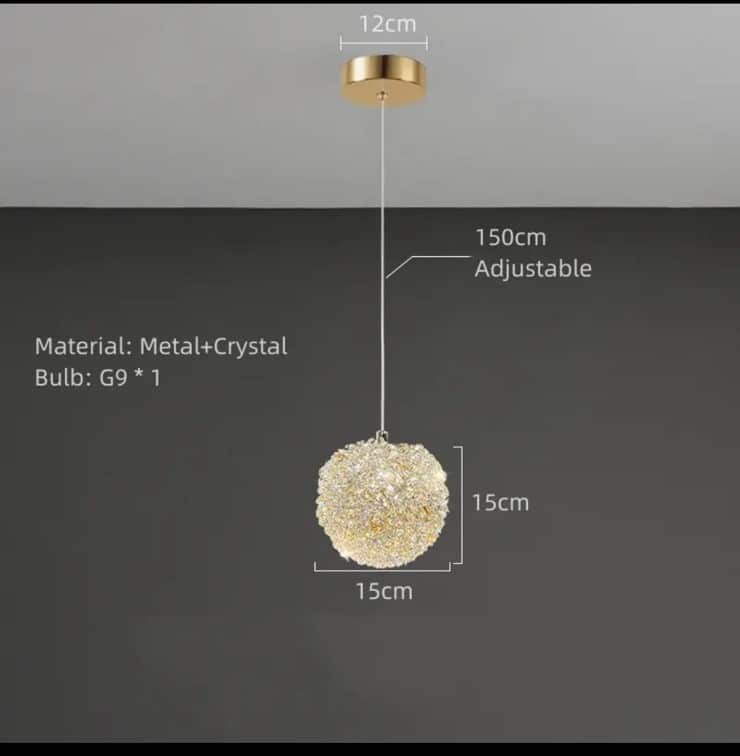 Függőlámpa, acél test+k9 kristály, 1 x 15 cm-es gömb, max. 1,5 m hosszú függeszték,