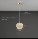 Beril Gömb mennyezeti lámpa, arany és kristály 1 függesztékkel -15 cm