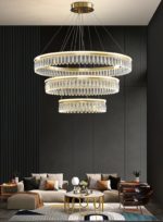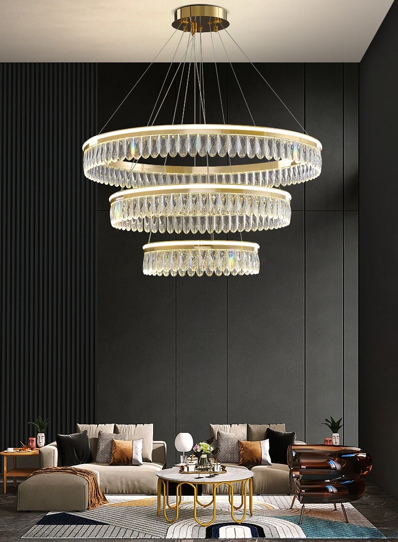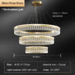 Mara mennyezeti lámpa, arany és kristály, 3 gyűrűs, 80+60+40 cm