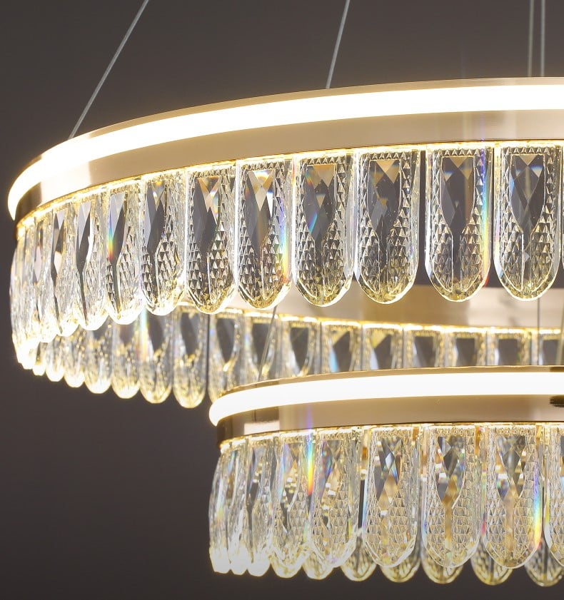 Technikai adatok: 102W, Galvanizált S arany kristály K9 (tiszta fény) LED 3 színű tompítás