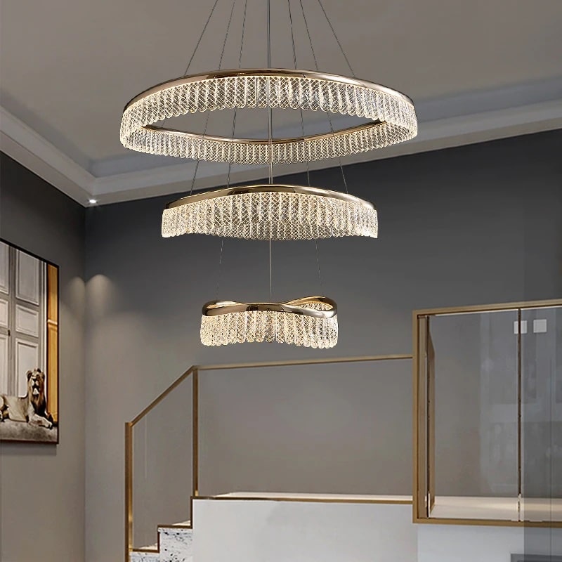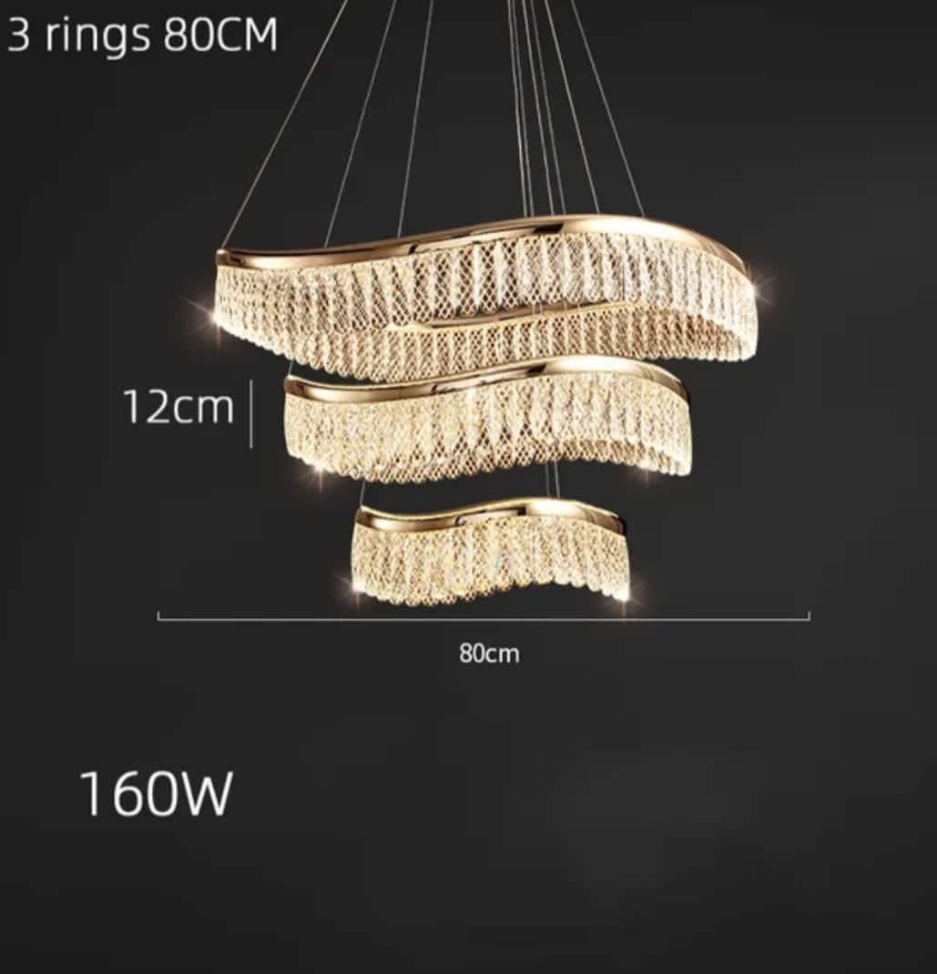 Ava függesztett lámpa – 3 ovális gyűrű, arany & kristály
