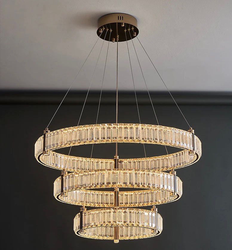 Ava függesztett lámpa – 3 ovális gyűrű, arany & kristály