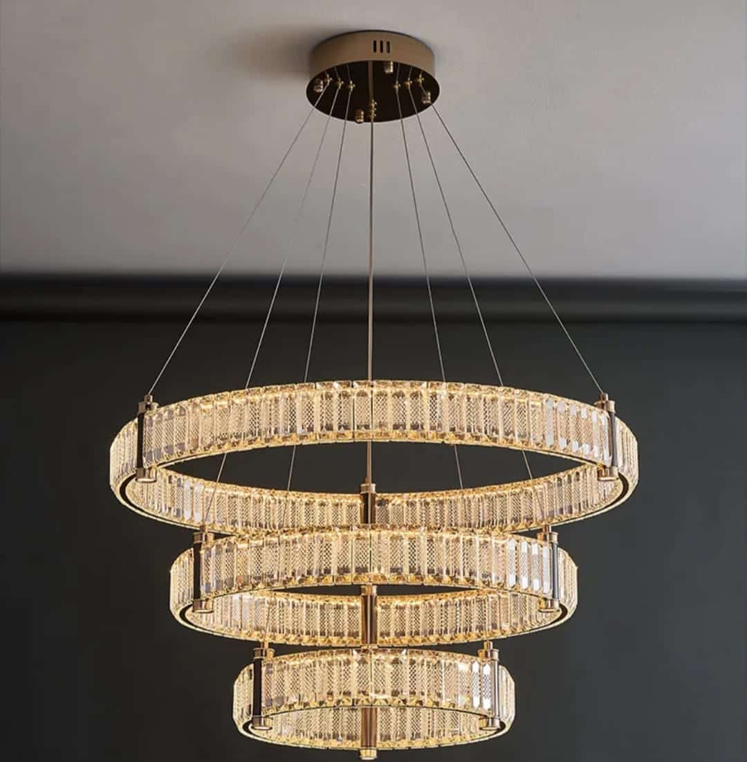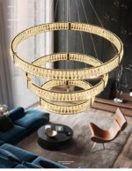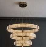 Bo Mercedes mennyezeti lámpa, arany és kristály, 3 gyűrűs, 80 +60+40cm