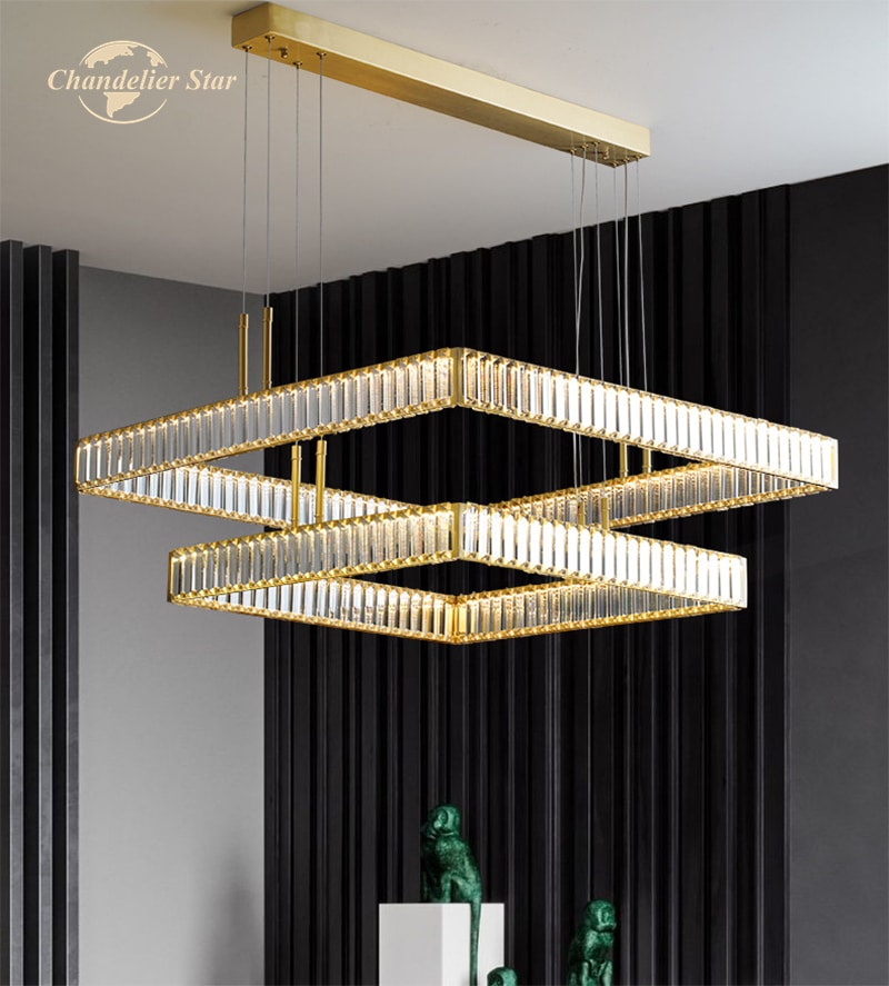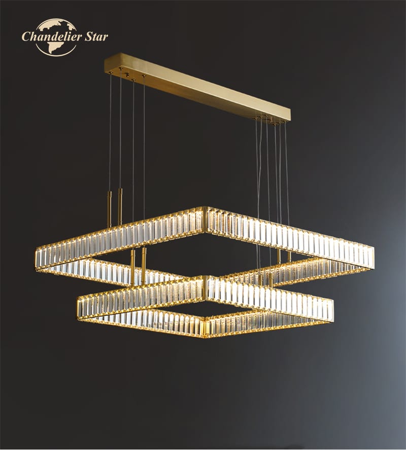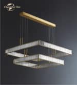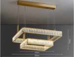 Bo Mirabell mennyezeti lámpa, arany és kristály, négyzetes, 2 függesztékkel, 60+40 cm