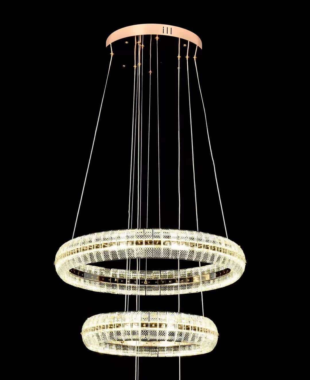 A Miriam család lámpái kristály és arany színben pompáznak, ötvözve a modernitást a klasszikus vonalakkal.