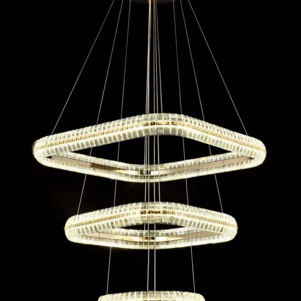 Ava függesztett lámpa – 3 ovális gyűrű, arany & kristály