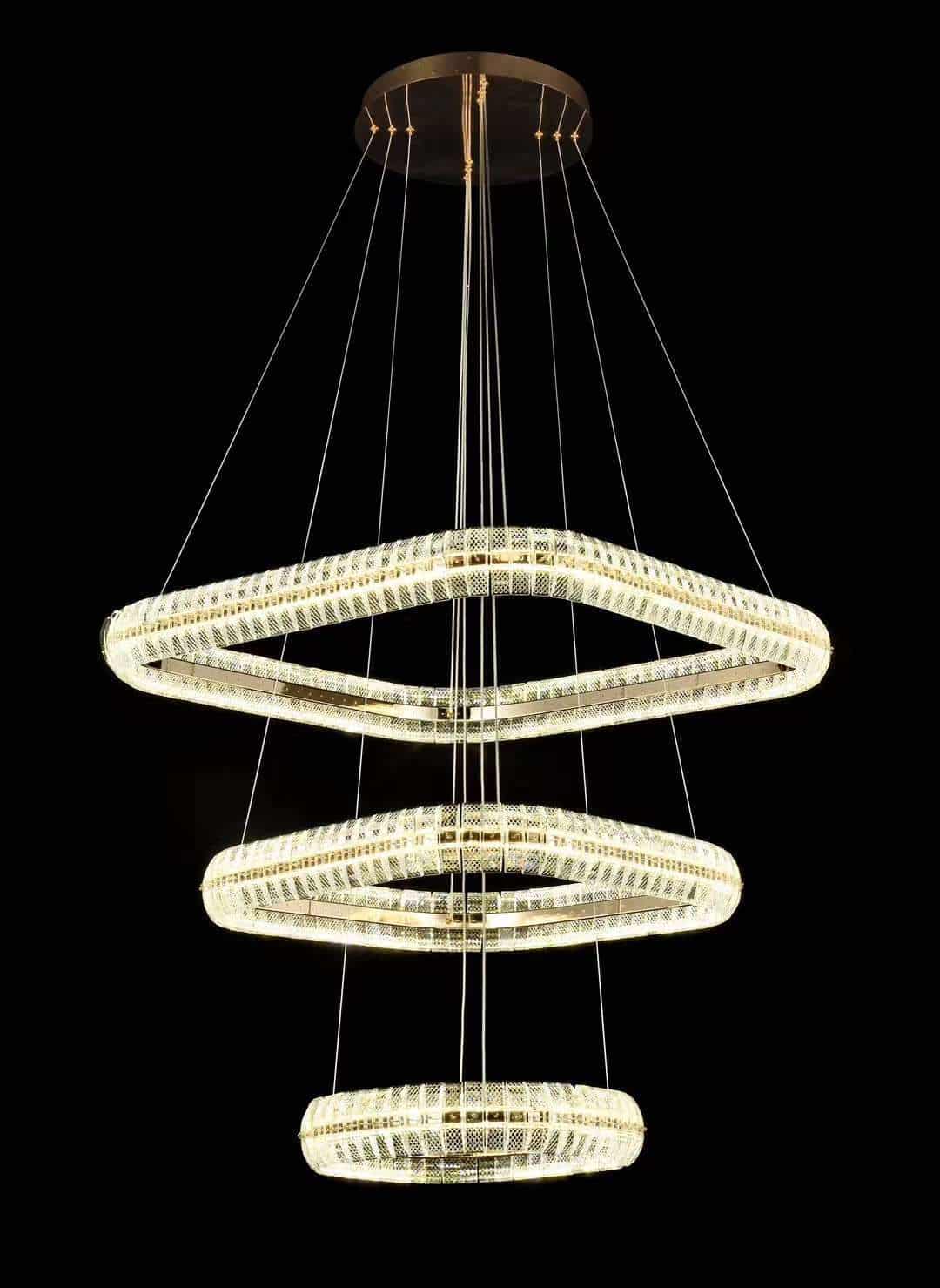Ava függesztett lámpa – 3 ovális gyűrű, arany & kristály