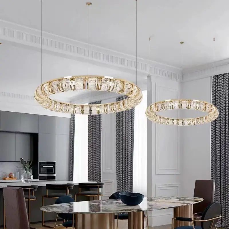 Cila Paloma mennyezeti lámpa, arany és kristály, 2 karikás, 40 cm + 60 cm