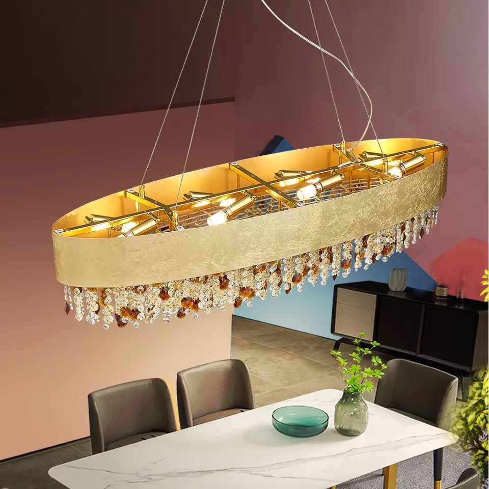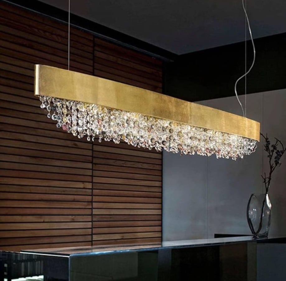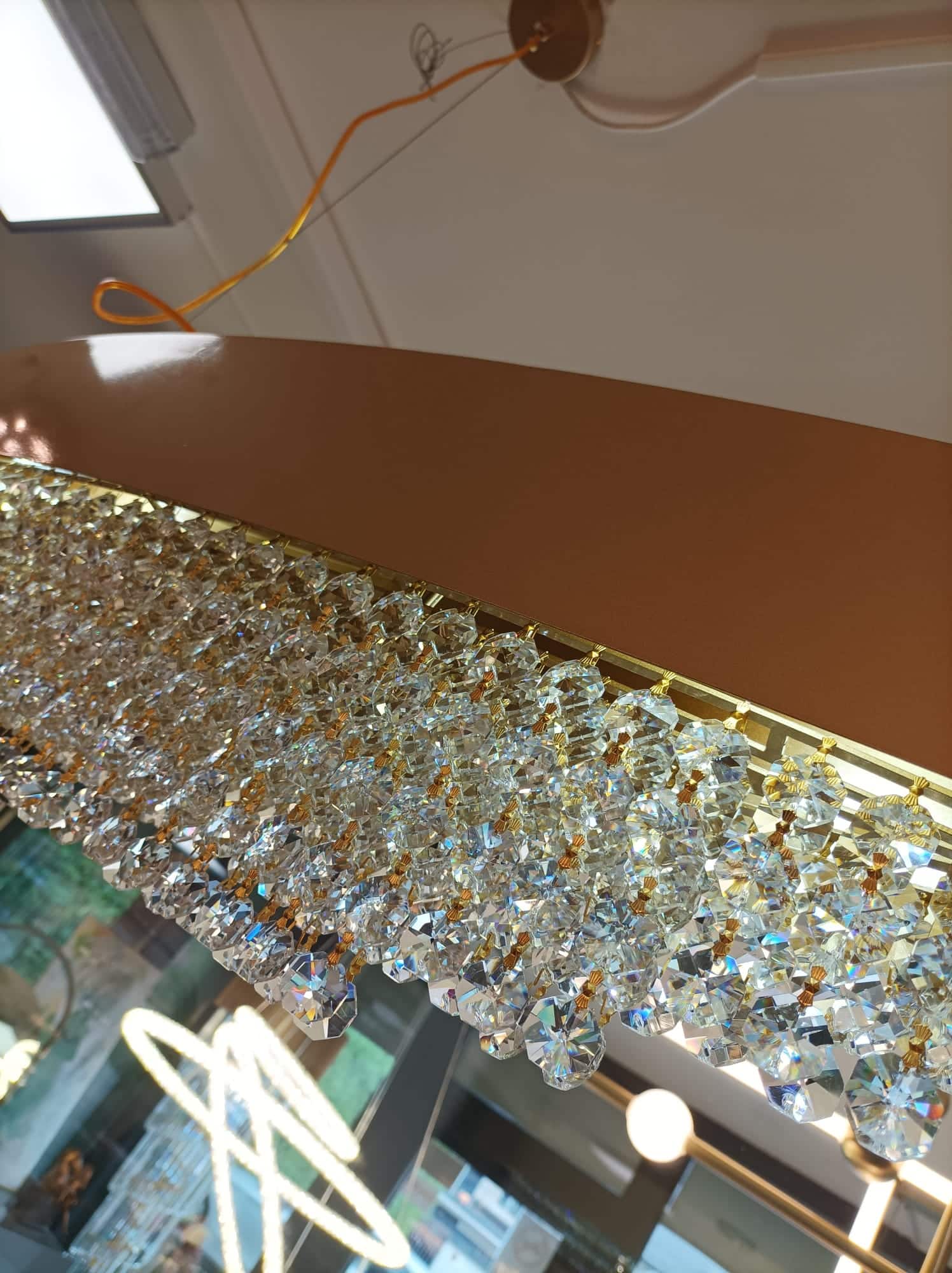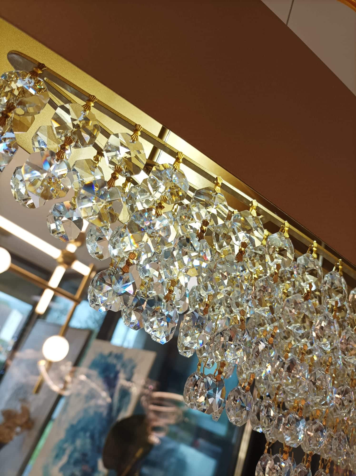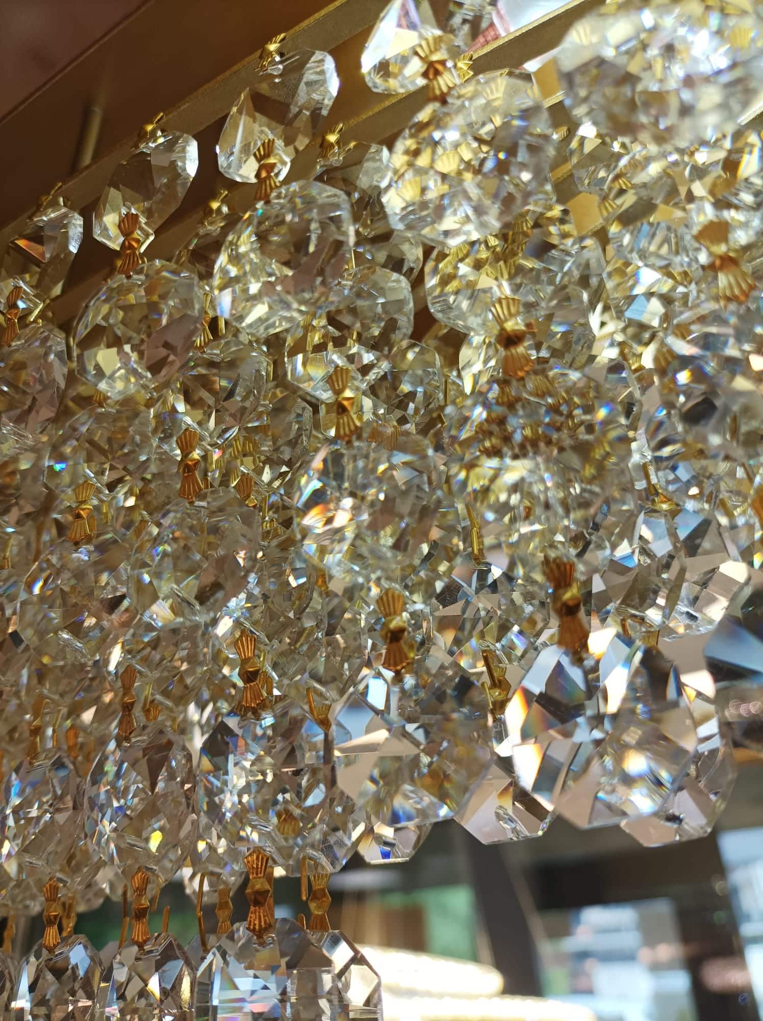 L100XH150cm , LED 30W ,2700 lm ,warm white, gold painting iron+ clear K9 crystal