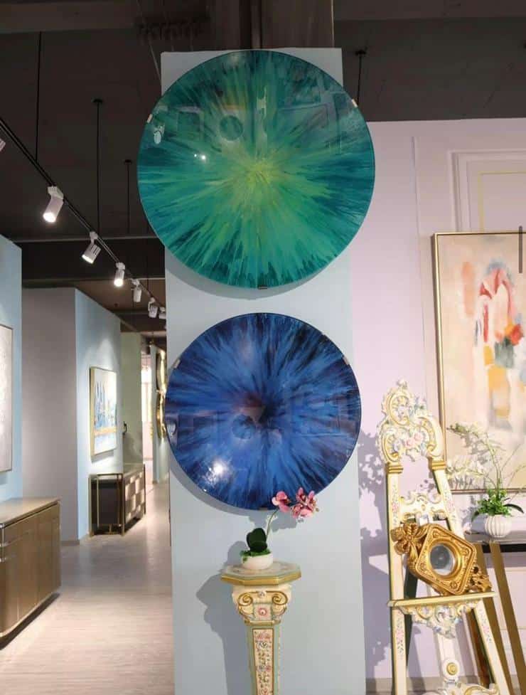 Iris üvegből készült, kézzel festett fali dekoráció.