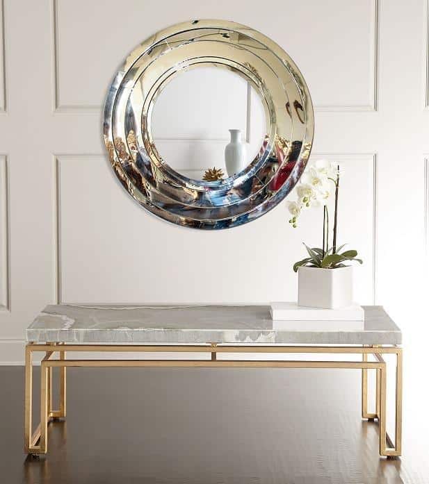 Karla falitükör fantasztikus megjelenésével könnyedén beragyogja otthonodat: bátran elhelyezhető az előszobák mellett akár nappalikban vagy hálószobákban is. Méreteiből adódóan tükör funkciója mellett könnyedén válik belőle kitűnő dekoráció is. Egyedisége abban rejlik, hogy a karikák is tükörből készültek így igazi különlegesség! Pazar küllemének köszönhetően mind a modern, mind a klasszikus stílusban berendezett terekben remekül tud érvényesülni.
