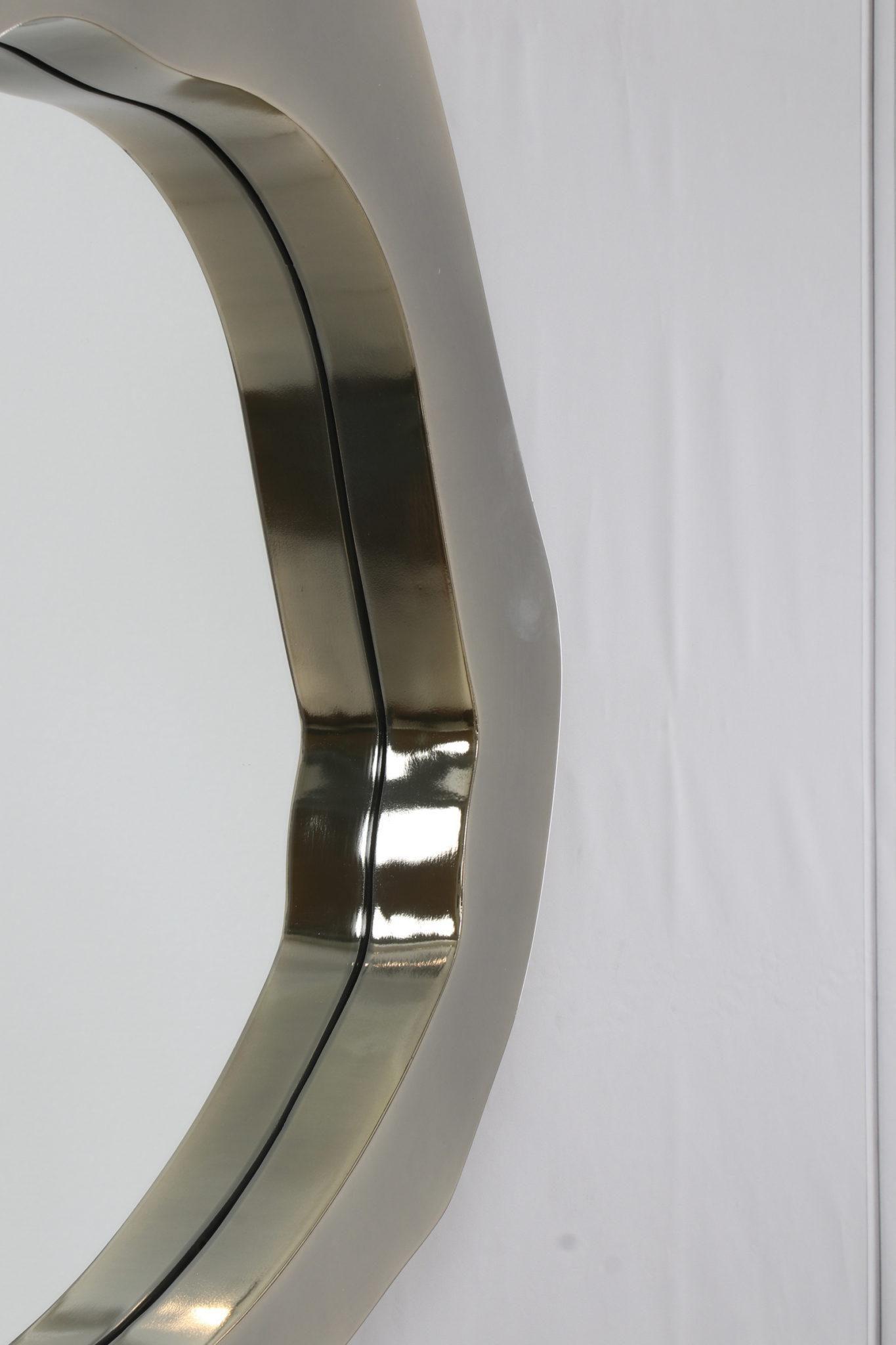 Dekoratív rozsdamentes acélból készült ezüst színű tükör, méretei: 81×91,5×4,5 cm.