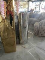Rozsdamentes ezüst padlóváza beltéri használatra.
