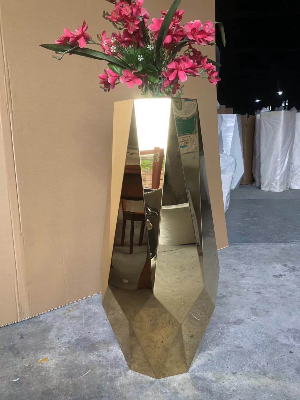 Csiri tükör arany rozsdamentes acélváza beltéri használatra.